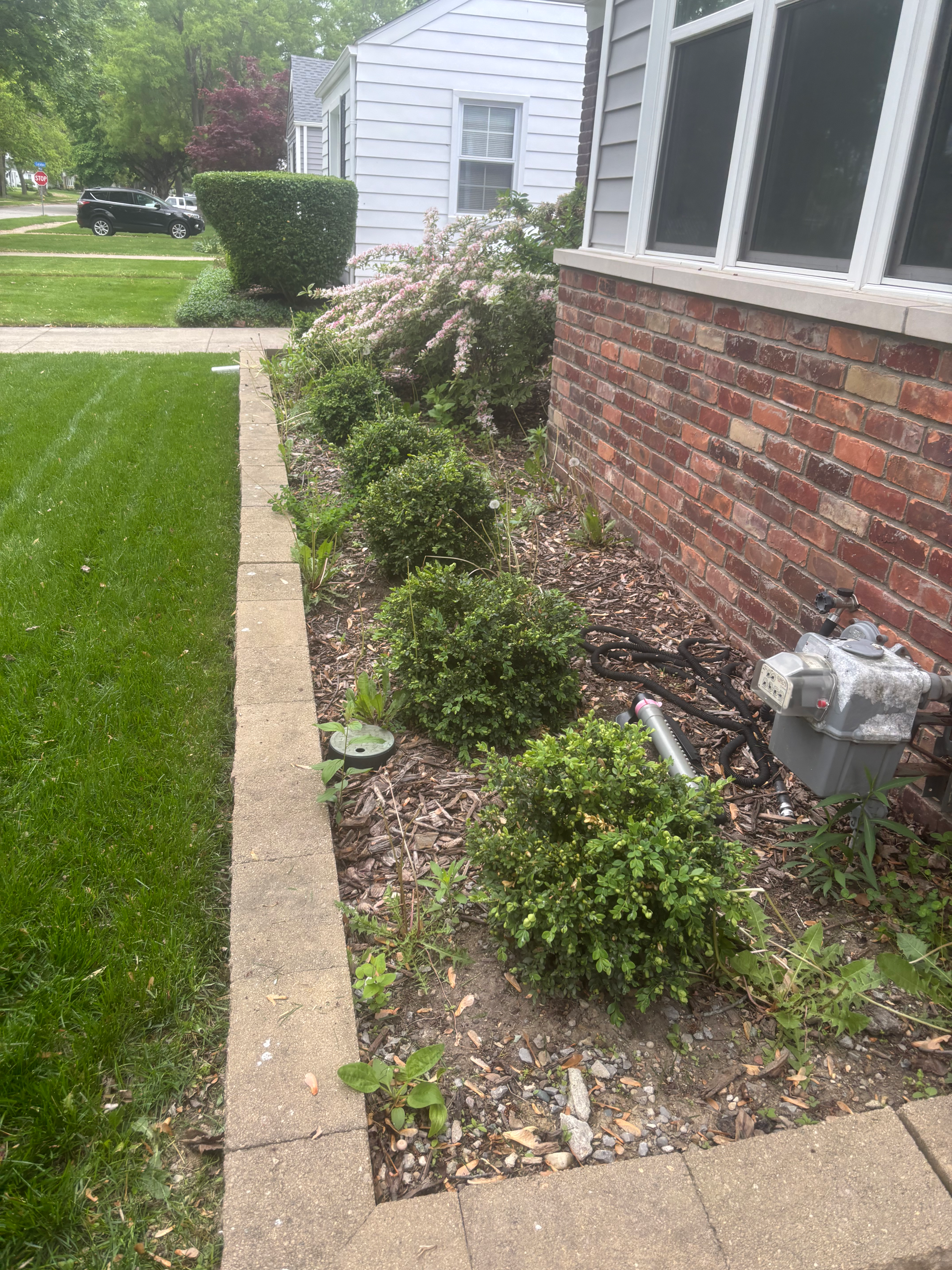 before shrub and garden bed cleaning